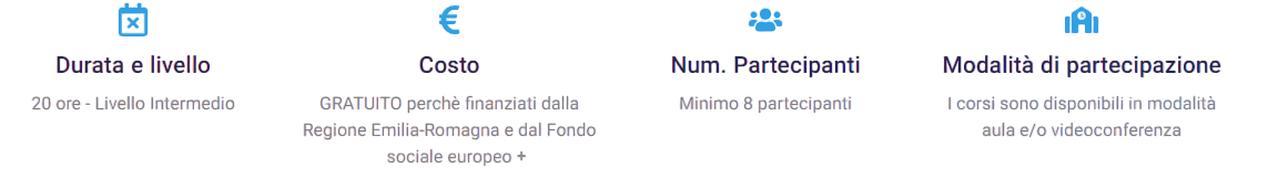 Donne che risultino residenti o domiciliate in Regione Emilia-Romagna in data antecedente all’iscrizione alle attività. L’accesso al corso richiede il possesso di conoscenze e competenze afferenti l’Area “Alfabetizzazione su informazioni e dati – Livello base, acquisite attraverso precedenti esperienze formali o non formali, oppure attraverso la frequenza ai progetti 1 o 2 o 3 della presente Operazione.